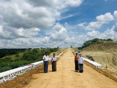 မကွေးတိုင်းဒေသကြီး ချောက်မြို့နယ်ကျေးလက်လမ်းဖွံ့ဖြိုးရေးဦးစီးဌာနက ချောက်- မကွေးကားလမ်းမကြီးမှ ရေတွင်းချိုင့်ကျေးရွာအဝင်လမ်းပေါ်ရှိ တံတားချဉ်းကပ်လမ်း မြေကာနံရံတည်ဆောက်ခြင်းလုပ်ငန်း ရာနှုန်းပြည့်ပြီးစီးမှု အခြေအနေများကို စက်တင်ဘာလ ၂၆ ရက် နံနက်ပိုင်းတွင် ကွင်းဆင်းစစ်ဆေးကြောင်း သိရသည်။