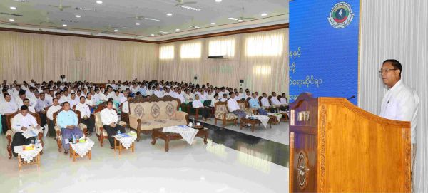 ရှေးဦးစွာ ပြည်ထောင်စုဝန်ကြီး ဦးလှမိုးက အမှာစကားပြောကြားရာတွင် အဂတိလိုက်စားမှု တားဆီးကာကွယ်ရေးဆိုင်ရာ အသိပညာပေးရှင်းလင်းဆွေးနွေးပွဲများ ကျင်းပပေးခြင်းဖြင့် ကော်မ ရှင်က ထုတ်ပြန်ထားသည့် ဥပဒေ၊ လုပ်ထုံးလုပ်နည်း၊ အမိန်နှင့် ညွှန်ကြားချက်များ၊ အဂတိ လိုက်စားမှုရဲ့ ဆိုးကျိုးများ၊ တားဆီးကာကွယ်ရမည့်နည်းလမ်းများကို သိရှိလာမှာဖြစ်၍ ကော်မရှင် ဥက္ကဋ္ဌနှင့် တာဝန်ရှိသူများအား ကျေးဇူးတင်ရှိပါကြောင်း၊ မိမိတို့ဝန်ကြီးဌာနအနေဖြင့် အဂတိဖြစ်နိုင် သည့်နေရာများကို စိစစ်ဖော်ထုတ်ခြင်း၊ မဖြစ်အောင်တားဆီးကာကွယ်ခြင်းနှင့် ဖြစ်ပေါ်လာသည့် ပြဿနားများကို ဖြေရှင်းဆောင်ရွက်နိုင်ရေး ဝန်ကြီးဌာန အဂတိလိုက်စားမှုတားဆီးကာကွယ်ရေး အဖွဲ့ (CPU) ကို ဖွဲ့စည်းကာ အဂတိလိုက်စားမှုလျော့နည်းပပျောက်ရေး စီမံဆောင်ရွက်လျက်ရှိပါ ကြောင်း၊ အဂတိလိုက်စားမှုများဟာ နိုင်ငံဖွံ့ဖြိုးတိုးတက်မှုအတွက် အဟန့်အတားဖြစ်စေသကဲ့သို့ လူတစ်ဦးချင်းစီ၏ ကိုယ်ကျင့်တရားနှင့် အကျင့်စာရိတ္တများ ပျက်စီးပြီး တရားမျှတတဲ့ ယှဉ်ပြိုင်လို စိတ်၊ ကိုယ်ရည်ကိုယ်သွေးများ ကျဆင်းလာမှာ ဖြစ်ပါကြောင်း၊ ဒါ့အပြင် ပြည်သူ့ဝန်ဆောင်မှု လုပ်ငန်းများကို အဟန့်အတားဖြစ်စေခြင်း၊ ပြည်သူများအကြား ဆင်းရဲချမ်းသာကွာဟမှုများ ဖြစ်ပေါ်စေခြင်း၊ ပြည်သူလူထု၏ ယုံကြည်မှုလျော့ကျစေခြင်းတို့အပြင် နိုင်ငံရဲ့ အုပ်ချုပ်ရေး၊ စီးပွားရေးနှင့် ယဉ်ကျေးမှု အသိုက်အဝန်းတစ်ခုလုံးကိုပါ ယိုယွင်းပျက်စီးစေပါကြောင်း၊ အဂတိ လိုက်စားမှုသည် နယ်ပယ်အသီးသီးမှာ ပုံစံအမျိုးမျိုးနှင့်ဖြစ်ပွားနိုင်ပြီး ကျူးလွန်ပါက အဂတိလိုက် စားမှုတိုက်ဖျက်ရေး ဥပဒေနှင့်အရေးယူခံရမည့်အပြင် မိမိပတ်ဝန်းကျင် အသိုင်းအဝိုင်း၌လည်း ဂုဏ်သိက္ခာ ထိခိုက်ကျဆင်းစေမည်ဖြစ်၍ ဝန်ထမ်းများအနေဖြင့် အဂတိတရားကင်းရှင်းပြီး စည်းမျဉ်းစည်းကမ်းများ၊ လူမှုကျင့်ဝတ်များကို လိုက်နာဆောင်ရွက်ကြရမည်ဖြစ်ကြောင်း၊