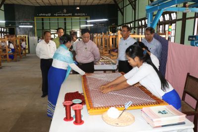 ထိုမှတဆင့် ပြည်ထောင်စုဝန်ကြီးသည် မိတ္ထီလာမြို့ရှိ၊ အသေးစားစက်မှုလက်မှုလုပ်ငန်းဦးစီး ဌာန၏ ရက်ကန်းနှင့် အသက်မွေးပညာသင်တန်းကျောင်းသို့ သွားရောက်ပြီး သင်တန်းသူစားရိပ်သာ အား ကြည့်ရှုစစ်ဆေးပြီး ရက်ကန်းနှင့်အထည်အလိပ်ကျွမ်းကျင်သူ (၁) နှစ်သင်တန်း၊ လက်ရက် ကန်း (၆)လသင်တန်း တက်ရောက်နေကြသော သင်တန်းသူများအတွက် ဆန်၊ ဆီ စားသောက်ဖွယ် ရာများ၊ ထောက်ပံ့ငွေများ ပေးအပ်ခဲ့သည်။ ဆက်လက်၍ လေ့ကျင့်ပျိုးထောင်ရေးစင်တာတွင် ကျောင်းအုပ်ဆရာမကြီး၊ နည်းပြဆရာမများ၊ သင်တန်းသူများနှင့်တွေ့ဆုံ အားပေးစကား ပြောကြား ကာ သင်တန်းသူများ၏ တစ်ဦးချင်းအခက်အခဲများကို မေးမြန်း၍ လိုအပ်သည်များ ညှိနှိုင်းပေါင်းစပ် ဆောင်ရွက်ပေးခဲ့သည်။ ထို့နောက် လက်ရက်ကန်း (၆) လ သင်တန်း တက်ရောက်နေသော သင်တန်းသူများ၏ လက်တွေ့သင်ယူနေမှုများကို အားပေးကြည့်ရှုခဲ့သည်။