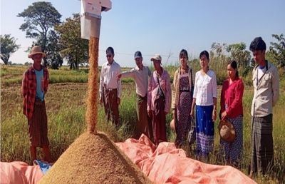 ပဲခူးတိုင်းဒေသကြီး၊ ဒိုက်ဦးမြို့နယ်တွင် သမဝါယမကဏ္ဍမှ နိုင်ငံ့စီးပွားမြှင့်တင်ရေးရန်ပုံငွေ ဖြင့်ဆောင်ရွက်ထားသည့် ရွှေလွင်မြေစိုက်ပျိုးရေးနှင့်အထွေထွေလုပ်ငန်းသမဝါယမအသင်း လီမိ တက်က စိုက်ပျိုးထားသော YSR-1 (အောင်နိုင်တိုး)စပါးစံပြစိုက်ခင်း၊ မိုးစပါးစံပြကွက်ရိတ်သိမ်းမှုကို ပျဉ်းမလွင်ကျေးရွာရှိ တောင်သူ ဦးဇော်ဝင်းသိန်း၏ လယ်မြေ၌ ရိတ်သိမ်းခဲ့သည်။