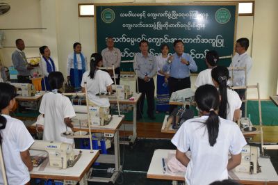 ဆက်လက်ပြီး ပြည်ထောင်စုဝန်ကြီးသည် ကျေးလက်ဒေသဖွံ့ဖြိုးတိုးတက်ရေးဦးစီးဌာနက (၆-၁၁-၂၀၂၅) မှ (၂၀-၁၂-၂၀၂၅) ထိ အသက်မွေးဝမ်းကျောင်းအထောက်အကူပြုအဖြစ် ဖွင့်လှစ် နေသော အဆင့်မြင့်အပ်ချုပ်စက်သင်တန်းမှ သင်တန်းသူ (၂၀) ဦးအား တွေ့ဆုံအားပေးစကား ပြောကြားကာ သင်ထောက်ကူပစ္စည်းများ ပေးအပ်ခဲ့သည်။