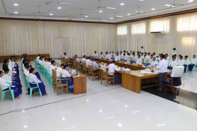 ကျောင်းဆင်းဝန်ထမ်းများအနေဖြင့် ဝန်ကြီးဌာန၏ မူဝါဒ၊ ရည်မှန်းချက်၊ ရည်ရွယ်ချက်နှင့် လုပ်ငန်းတာဝန်များ၊ သက်ဆိုင်ရာဦးစီးဌာနများရဲ့ လုပ်ငန်းတာဝန်များကို သိရှိလိုက်နာ ဆောင်ရွက် နိုင်ရေး လုပ်ငန်းခွင်ဝင်သင်တန်းကို ဖွင့်လှစ်ပို့ချပေးသွားမည်ဖြစ်ကြောင်း၊ မဟာအရည်အချင်းစစ် သင်တန်းတက်ရောက်ရန် အဆင့်မီသူ (၃၄) ဦးကိုလည်း လုပ်ငန်းခွင်မှာ (၁) နှစ် တာဝန်ထမ်းဆောင် ပြီးနောက် နီးစပ်ရာတက္ကသိုလ်များတွင် On Duty ဖြင့် ဆက်လက်တက်ရောက်စေမည် ဖြစ်ကြောင်း၊
