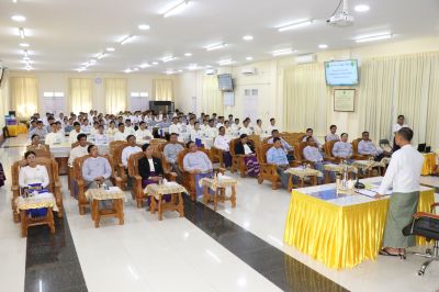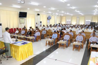 သမဝါယမနှင့် ကျေးလက်ဖွံ့ဖြိုးရေးဝန်ကြီးဌာန ပြည်ထောင်စုဝန်ကြီးရုံးနှင့် ဝန်ကြီးဌာန ကွပ်ကဲမှုအောက်ရှိ ဦးစီးဌာနများတွင် တာဝန်ထမ်းဆောင်ကြမည့် ပြည်ထောင်စုတိုင်းရင်းသား လူငယ်များစွမ်းရည်ဖွံ့ဖြိုးရေးဒီဂရီကောလိပ် ရန်ကုန်နှင့် စစ်ကိုင်းတို့မှ ကျောင်းဆင်းဝန်ထမ်းများအား လုပ်ငန်းခွင်ဝင်သင်တန်းဆင်းပွဲအခမ်းအနားကို ယနေ့မွန်လွဲပိုင်းက နေပြည်တော်ရှိ ရုံးအမှတ်(၃၆-ဘီ) ကျေးလက်ဒေသဖွံ့ဖြိုးတိုးတက်ရေးဦးစီးဌာန သင်တန်းခန်းမ၌ ကျင်းပပြုလုပ်ရာ ဒုတိယဝန်ကြီး ဦးသိုက်စိုးနှင့် ဦးစီးဌာနများမှ တာဝန်ရှိသူများ တက်ရောက်ကြပါသည်။