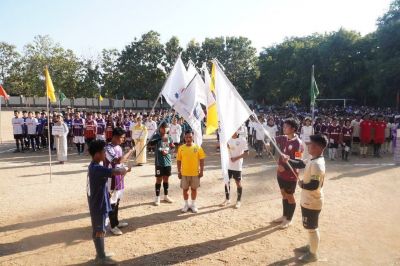 ဆက်လက်၍ အားကစားသမားများမှ အားကစားသံဓိဋ္ဌာန်များ သံပြိုင်ရွတ်ဆိုခဲ့ကြပြီး အလံကိုင်အဖွဲ့များ ဦးဆောင်၍ ပြိုင်ပွဲဝင်အားကစားသမားများသည် အားကစားကွင်းအတွင်းမှ ပြန်လည် ထွက်ခွာခဲ့ပါသည်။