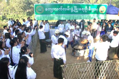 (၇၉) နှစ်မြောက် ပြည်ထောင်စုနေ့ကို ကြိုဆိုဂုဏ်ပြုသောအားဖြင့် သမဝါယမနှင့် ကျေးလက် ဖွံ့ဖြိုးရေးဝန်ကြီးဌာန၊ ဝန်ထမ်းမိသားစုများ၏ ပဉ္စမအကြိမ် မြန်မာ့ရိုးရာထမင်းနဲထိုးပြိုင်ပွဲကို ယနေ့နံနက်ပိုင်းက ရုံးအမှတ်(၁၆)၊ပြည်ထောင်စုဝန်ကြီးရုံး၌ ကျင်းပပြုလုပ်ရာ ပြည်ထောင်စုဝန်ကြီး ဦးလှမိုး၊ အမြဲတမ်းအတွင်းဝန် ဦးခန့်ဇော်၊ ညွှန်ကြားရေးမှူးချုပ်များ၊ ပြိုင်ပွဲဝင်အသင်းများနှင့် အရာထမ်းအမှုထမ်းများ စုံညီစွာတက်ရောက်ခဲ့ကြပြီး ပြိုင်ပွဲကို ပျော်ရွှင်စွာပါဝင်ဆင်နွှဲကြပါသည်။