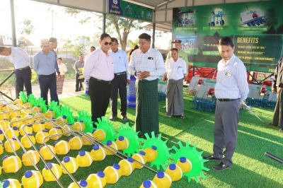 နေ့လယ်ပိုင်းတွင် ပြည်ထောင်စုဝန်ကြီး၊ အမြဲတမ်းအတွင်းဝန်၊ ညွှန်ကြားရေးမှူးချုပ်များနှင့် သက်ဆိုင်ရာ တာဝန်ရှိသူများသည် လယ်ဝေးမြို့နယ်၊ တလုပ်ပင်ကျေးရွာရှိ ဒို့မြန်မာသမဝါယမ အသင်းနှင့် ကြံတိုင်းအောင်သမဝါယမအသင်းတို့ အကျိုးတူပူးပေါင်း ဆောင်ရွက်လျက်ရှိသည့် စပ်မျိုးနွားကောင်ရေ (၄၇၂)ကောင် မွေးမြူထားရှိမှု အခြေအနေများကို သွားရောက်ကြည့်ရှု စစ်ဆေးရာ သက်ဆိုင်ရာ တာဝန်ရှိသူများက လုပ်ငန်းဆောင်ရွက်နေမှု အခြေအနေများအား ရှင်းလင်းတင်ပြမှုအပေါ် ပြည်ထောင်စုဝန်ကြီးက နွားစာအတွက် ဖြည့်စွက်စာများဖြစ်သည့် ပြောင်း၊ ဟင်းနုနွယ်မြက်နှင့် နေဗီယာမြက်များ တိုးချဲ့စိုက်ပျိုးရန်လိုအပ်ကြောင်း၊ ဒါမှသာ အစာအတွက် ကုန်ကျစရိတ်သက်သာပြီး ပိုမိုအကျိုးရှိမှာဖြစ်ကြောင်း ဆွေးနွေးမှာကြားပြီး နေဗီယာမြက် စိုက်ပျိုး ထားရှိမှု အခြေအနေများ၊ ဝန်ထမ်းအိမ်ဆောင်နှင့် ရုံးခန်းများ တည်ဆောက်ထားရှိမှု အခြေအနေ များကို ကြည့်ရှုစစ်ဆေးပါသည်။