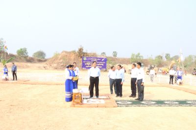 ရှေးဦးစွာ ပြည်ထောင်စုဝန်ကြီး၊ ဒုတိယဝန်ကြီးနှင့်အဖွဲ့သည့် “ပုလဲဥ” အထွေထွေစီးပွားရေး လုပ်ငန်းသမဝါယအသင်းလီမိတက်၏ အုတ်ကြွပ်အမိုးပြားနှင့် အုတ်စက်ရုံ တည်ဆောက်မည့် မြေနေရာ၌ ပန္နက်တင် မင်္ဂလာပြုလုပ်ကြပါသည်။