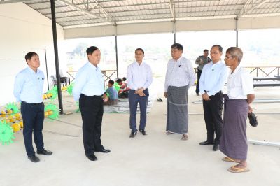 ဆက်လက်၍ ပြည်ထောင်စုဝန်ကြီးနှင့်အဖွဲ့သည် လယ်ဝေးမြို့နယ်၊ မြွေရိုး ကျောင်းစုကျေးရွာ အုပ်စု၊ ရုံးတောကျေးရွာသို့ရောက်ရှိပြီး ရွှေဝါထွန်း(၂)စိုက်ပျိုးထုတ်လုပ်ရေး သမဝါယမအသင်း လီမိတက်ပိုင်မြေပေါ်တွင် ရွှေဝါထွန်း(၂)စိုက်ပျိုးထုတ်လုပ်ရေး သမဝါယမအသင်းနှင့် မျိုးဇမ္ဗူကုမ္ပဏီ တို့ အကျိုးတူပူးပေါင်းဆောင်ရွက်မည့် ဥစားကြက်မွေးမြူရေးလုပ်ငန်းမှ ကြက်ခြံတည်ဆောက်နေမှု အခြေအနေများအားလည်းကောင်း၊ ရွှေဝါထွန်း(၂)စိုက်ပျိုးထုတ်လုပ်ရေး သမဝါယမအသင်းနှင့် ခေတ်ရှေ့ဆောင် စိုက်ပျိုးရေး၊ မွေးမြူရေးနှင့် အထွေထွေစီးပွားရေးလုပ်ငန်းသမဝါယမအသင်း လီမိတက်တို့ ပူးပေါင်းဆောင်ရွက်လျက်ရှိသည့် လယ်ယာသုံးစက်ကိရိယာအရောင်းပြခန်းနှင့် လယ်ယာသုံးစက်ပစ္စည်း အသစ်တပ်ဆင်/ အဟောင်းပြုပြင် အလုပ်ရုံ၌ မျိုးစေ့ချကိရိယာများ တပ်ဆင်နေမှု အခြေအနေများအားလည်းကောင်း ကြည့်ရှု စစ်ဆေးရာ သက်ဆိုင်ရာတာဝန်ရှိသူ များ၏ ရှင်းလင်းတင်ပြမှုအပေါ် ပြည်ထောင်စုဝန်ကြီးက ကြက်ခြံတည်ဆောက်ခြင်းလုပ်ငန်းများ လုပ်ထုံးလုပ်နည်းများနှင့်အညီ သတ်မှတ်ကာလအတွင်း အချိန်မီပြီးစီးရေးနှင့် မျိုးစေ့ချကိရိယာ များအား နွေစပါးစိုက်ပျိုးချိန်အမီ အသင်းသားတောင်သူများ လက်ဝယ်ရောက်ရှိရေး အလေးထား ဆောင်ရွက်သွားရန် ဆွေးနွေးမှာကြားခဲ့ကြောင်း သတင်းရရှိပါသည်။