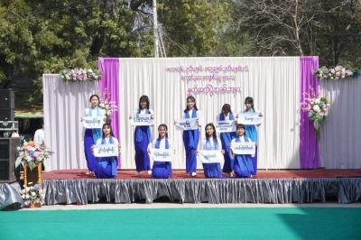 ဆက်လက်၍ အစီအစဉ်အရ တက်ရောက်လာကြသော ဧည့်သည်တော်များအား မေဂျာ(၅)ဌာနမှ ကျောင်းသား/သူများနှင့် ပထမနှစ်ကျောင်းသား/သူများအားလုံးမှ စုပေါင်း၍ “မန်းတောင်ရိပ်ခို” သီချင်း ဖြင့် စတင်ဖွင့်လှစ်ခဲ့ပြီး အဆိုအကအလှများဖြင့် ကပြဖျော်ဖြေခဲ့ကြကာ အခမ်းအနားကို နေ့လယ် (၁၂း၀၀)နာရီတွင် အောင်မြင်စွာ ပြီးမြောက်ခဲ့ပါသည်။