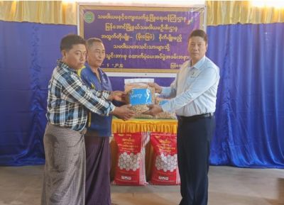 ဆက်လက်၍ တိုင်းဒေသကြီးဦးစီးမှူး ဦးကျော်စိုးမင်း၊ မြို့နယ်စီမံခန့်ခွဲရေးနှင့်အုပ်ရေး ကော်မတီဥက္ကဋ္ဌ ဦးနေမင်းထွန်းနှင့် မြို့နယ်သမဝါယမဦးစီးဌာန ဦးစီးအရာရှိ ဒေါ်ယမင်းသူတို့က အထွက်တိုးမျိုး(မိုးမြေပဲ)နှင့် သွင်းအားစုများ ထောက်ပံ့ပေးအပ်ခဲ့ကြသည်။