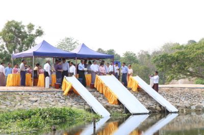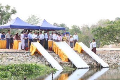 ဆက်လက်၍ ဝန်ကြီးဌာန ရုံးဝင်းအတွင်းရှိ လျှိုပိတ်ဆည်ထဲသို့ ဇီဝိတဒါန ငါးလွှတ်ပွဲ အခမ်းအနားတက်ရောက်ရာ ပြည်ထောင်စုဝန်ကြီးနှင့် ဇနီး၊ ဒုတိယဝန်ကြီးနှင့်ဇနီး၊ တာဝန်ရှိသူ များက ဝန်ထမ်းများနှင့်အတူ ဇီဝိတဒါနအဖြစ် ငါးကောင်ရေ(၆၃၀၀) လွှတ်ပေးခဲ့ကြောင်း သတင်း ရရှိပါသည်။