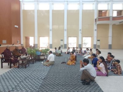 သမဝါယမနှင့်စီမံခန့်ခွဲမှုပညာတက္ကသိုလ်(စစ်ကိုင်း)တွင် (၁၇.၄.၂၀၂၆)ရက်နေ့ ညနေ (၃း၀၀)နာရီ အချိန်၌ တိလောကမာရဇိန်ဆုတောင်းပြည့် မြတ်စွာဘုရားဓမ္မာရုံနှင့် တက္ကသိုလ် ပင်မအဆောက်အဦ ဘွဲ့နှင်းသဘင်ခန်းမတို့တွင် အန္တရာယ်ကင်း ပရိတ်တရားတော် နာယူခြင်း ဆောင်ရွက်ခဲ့ရာ ဒုတိယပါမောက္ခချုပ်(စီမံ)၊ အုပ်ချုပ်ရေးဌာနများဖြစ်သော စီမံရေးရာဌာန၊ သင်တန်းရေးရာဌာနနှင့် သုတေသနနှင့်ဖွံ့ဖြိုးမှုဌာနများမှ ဌာနမှူးများ၊ သင်ကြားရေးဌာနများမှ ပါမောက္ခ(ဌာနမှူး)များ၊ တွဲဖက်ပါမောက္ခ/ ကထိက (ဌာနမှူး)များ၊ ဆရာ၊ ဆရာမများနှင့် ဝန်ထမ်းများ တက်ရောက်ခဲ့ကြပါသည်။