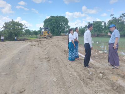 ထိုသို့ ကွင်းဆင်းစစ်ဆေးရာတွင် မန္တလေးတိုင်းဒေသကြီးကျေးလက်လမ်းဖွံ့ဖြိုးရေးဦးစီးဌာန ညွှန် ကြားရေးမှူး (မြို့ပြ) ဦးကျော်ဇေယျံလင်း၊ ညောင်ဦးခရိုင် ကျေးလက်လမ်းဖွံ့ဖြိုးရေးဦးစီးဌာန လက်ထောက်ညွှန်ကြားရေးမှူး (မြို့ပြ) ဦးအေးလွင်၊ ကျောက်ပန်းတောင်းမြို့နယ် ကျေးလက်လမ်းဖွံ့ဖြိုးရေးဦးစီးဌာန ဦးစီးအရာရှိ(မြို့ပြ) ဒေါဖြိုးဖြိုးသိမ့်နှင့် တာဝန်ရှိသူများက ကျောက်ပန်းတောင်းမြို့နယ်အတွင်းရှိ လက်ပံပြား-ကြက်ဖြူတဲ့- ဇလင်းတောင် ကျေးရွာချင်းဆက် မြေသားလမ်းခင်းခြင်းလုပ်ငန်း ဆောင်ရွက်နေမှုအခြေအနေများကို ကြည့်ရှုစစ်ဆေးပြီး မန္တလေးတိုင်းဒေသကြီးကျေးလက်လမ်းဖွံ့ဖြိုးရေးဦးစီးဌာန ညွှန်ကြားရေးမှူး(မြို့ပြ) ဦးကျော်ဇေယျံလင်းက လမ်းနှင့် ပတ်သက်၍ ရေထွက်ပေါက်များ ထည့်သွင်းဆောင်ရွက်သွားရန်နှင့် လမ်းပုံပေါ်စေရေး သတ်မှတ်လမ်းဒီဇိုင်းအတိုင်း ဆောင်ရွက်သွားရန်ဆွေးနွေးမှာကြားသည်။