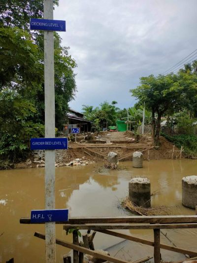 ဧရာဝတီတိုင်းဒေသကြီး လေးမျက်နှာမြို့နယ်တွင် ကျေးလက်လမ်းဖွံ့ဖြိုးရေးဦးစီးဌာနမှ တာဝန်ယူဆောင် ရွက်လျက်ရှိသော မိုးကုတ်(စိန်တောင်) တံတားဆောက်လုပ်နေမှုနှင့် စောပြာ-လှော်ကထားလမ်း ကတ္တရာထပ်ပိုးလွှာ ခင်းခြင်းလုပ်ငန်းများကို ဇူလိုင် ၂၉ ရက်က ကွင်းဆင်းစစ်ဆေးသည်။