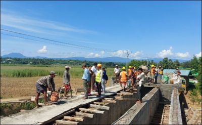 သရက်ခရိုင် ကျေးလက်လမ်းဖွံ့ဖြိုးရေးဦးစီးဌာန ကွပ်ကဲမှုအောက်ရှိ မြို့နယ်များက တာဝန်ယူ အကောင် အထည်ဖော် ဆောင်ရွက်နေသည့် ကြို့ကုန်း-ကံလည် ကျေးရွာချင်းဆက်လမ်းပေါ်ရှိ ကြို့ကုန်းတံတား တည်ဆောက်နေမှု အခြေအနေများကို ခရိုင်လက်ထောက်ညွှန်ကြားရေးမှူး(မြို့ပြ) ဒေါ်ဇာလှိုင်သန်းနှင့် တာဝန်ရှိသူများက စက်တင်ဘာ ၂၈ ရက်က သွားရောက်ကြည့်ရှုစစ်ဆေးသည်။