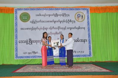 သမဝါယမနှင့်ကျေးလက်ဖွံ့ဖြိုးရေးဝန်ကြီးဌာန၊ နေပြည်တော်အသေးစားစက်မှုလက်မှုလုပ်ငန်းဦးစီးဌာနမှ ၂၀၂၃-၂၀၂၄ ဘဏ္ဍာရေးနှစ်အတွင်း ဆောင်ရွက်လျက်ရှိသည့် အသေးစားကုန်ထုတ်လုပ်ငန်းများဖန်တီးပေးနိုင်ရေးနှင့် ကျေးလက်နေမိသားစုဝင်ငွေတိုးရေး စီမံကိန်းလုပ်ငန်းအစီအစဉ်ဖြင့် အမျိုးသမီးများ ဝင်ငွေတိုးတက်စေရန် ရည်ရွယ်၍ ဥတ္တရသီရိမြို့နယ်၊ တောင်ညိုကျေးရွာအုပ်စုမှ စက်ချုပ်လုပ်ငန်းလုပ်ကိုင်လိုသူ (၂၀)ဦးအား အခြေခံစက်ချုပ်နည်းပညာနှင့် ဖက်ရှင်ဒီဇိုင်းသင်တန်း ဖွင့်လှစ်ပေးခဲ့ပြီး အဆိုပါသင်တန်းသူများထဲမှ သတ်မှတ်ချက်များနှင့်အညီ ရွေးချယ်ထားသော ထူးချွန်သင်တန်းသား (၅)ဦးအား စက်ချုပ်လုပ်ငန်းထူထောင်ပေးနိုင်ရန် စက်ပစ္စည်းများပေးအပ်သည့် ဒေသဖွံ့ဖြိုးရေးလုပ်ငန်းသုံးပစ္စည်းများပေးအပ်ပွဲအခမ်းအနားအား ဥတ္တရသီရိမြို့နယ်၊ အထွေထွေအုပ်ချုပ်ရေးမှူးရုံးခန်းမ၌ ကျင်းပပြုလုပ်ခဲ့ပါသည်။