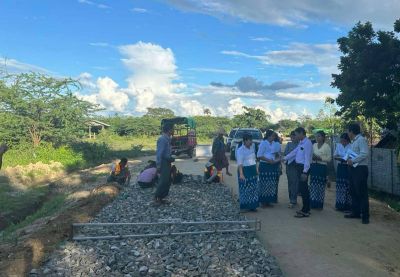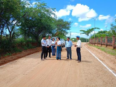 သမဝါယမနှင့်ကျေးလက်ဖွံ့ဖြိုးရေးဝန်ကြီးဌာန၊ ကျေးလက်လမ်းဖွံ့ဖြိုးရေးဦးစီးဌာန ညွှန်ကြားရေးမှူးချုပ် ဦးစိုးထွန်းနိုင်သည် သက်ဆိုင်ရာတာဝန်ရှိသူများနှင့်အတူ မန္တလေးတိုင်းဒေသကြီး၊ မိတ္ထီလာခရိုင် မိတ္ထီလာမြို့နယ်၊ အိုင့်ကျေးရွာသို့ ရောက်ရှိပြီး ကျောက်ပန်းတောင်းလမ်းမှ အိုင့်-သနပ်အိုင့်လမ်း ကတ္တရာခင်းခြင်းလုပ်ငန်းနှင့် ၎င်းလမ်းပေါ်ရှိ (၁၅၀') အရှည် RC Concrete Bored Pile တံတားလုပ်ငန်းဆောင်ရွက်နေမှုများအား ကြည့်ရှုစစ်ဆေးပြီး ညွှန်ကြားရေးမှူးချုပ်က လုပ်ငန်းများ သတ်မှတ်စံချိန်စံညွှန်းနှင့်အညီ အချိန်မီပြီးစီးအောင် ဆောင်ရွက်သွားရန် ဆွေးနွေးမှာကြားပါသည်။အဆိုပါ ကတ္တရာခင်းခြင်း (၀/၆)မိုင်လုပ်ငန်းအား ပြည်ထောင်စု ငွေလုံးငွေရင်း ခွင့်ပြုရန်ပုံငွေကျပ် ၁၉၉.၁၉ သန်းဖြင့် မြို့နယ်ကျေးလက်လမ်းဖွံ့ဖြိုးရေးဦးစီးဌာနက တာဝန်ယူဆောင်ရွက်လျက်ရှိပြီး ယခုအခါ လုပ်ငန်းများ ၅၅% ပြီးစီးနေပြီဖြစ်ပါသည်။ အဆိုပါလမ်းပေါ်ရှိ ကွန်ကရစ်တံတား (၁၅၀')လုပ်ငန်းကို ပြည်ထောင်စုငွေလုံးငွေရင်း ခွင့်ပြုရန်ပုံငွေကျပ် ၄၈၀ သန်းဖြင့် ကျေးလက်လမ်းဖွံ့ဖြိုးရေးဦးစီးဌာန၊ တံတားတည်ဆောက်ရေးအဖွဲ့(ရုံးချုပ်)မှ ဆောင်ရွက်လျက်ရှိပြီး ယခုအခါ လုပ်ငန်းများ ၅၈% ပြီးစီးနေပြီဖြစ်ပါသည်။ အဆိုပါ ကတ္တရာလမ်းနှင့် ကွန်ကရစ်တံတား တည်ဆောက် ပြီးစီးပါက ကျေးရွာ (၅)ရွာ၊ အိမ်ခြေ (၆၅၂)အိမ်၊ လူဦးရေ (၃၀၉၃)ဦးနှင့် စိုက်ပျိုးမြေဧက (၅၈၀)ဧကအား အကျိုးပြုမှာဖြစ်ပါသည်။