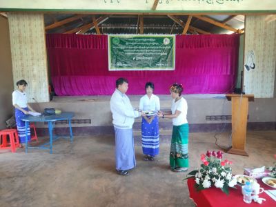 ဆက်လက်၍ လွိုင်လင်ခရိုင် အသေးစားစက်မှုလက်မှုလုပ်ငန်းဦးစီးဌာန ခရိုင်ဦးစီးမှူးက စီမံကိန်းလုပ်ငန်းနှင့် ဌာန၏ ရည်ရွယ်ချက်များကို ရှင်းလင်းပြောကြားပြီး လွိုင်လင်ခရိုင် ကျေးလက်ဒေသဖွံ့ဖြိုးတိုးတက်ရေးဦးစီးဌာန ခရိုင်ဦးစီးမှူးက သင်တန်းသုံးကုန်ကြမ်းပစ္စည်းများ ပေးအပ်ပါသည်။