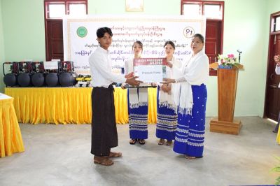 ဆက်လက်၍ အသေးစားစက်မှုလက်မှုလုပ်ငန်းဦးစီးဌာန၊ ညွှန်ကြားရေးမှူးချုပ်၊ ဒုတိယညွှန်ကြားရေးမှူးချုပ်နှင့် တာဝန်ရှိသူများက အမှန်တကယ်လုပ်ငန်းထူထောင်မည့် ထူးချွန်သင်တန်းသား(၅)ဦးကို ဆုများချီးမြှင့်ပြီး ဒေသဖွံ့ဖြိုးရေးလုပ်ငန်းသုံးပစ္စည်းများ ပေးအပ်ခဲ့ကြောင်းသတင်းရရှိပါသည်။