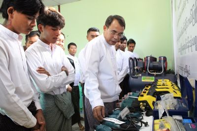သမဝါယမနှင့်ကျေးလက်ဖွံ့ဖြိုးရေးဝန်ကြီးဌာန၊ အသေးစားစက်မှုလက်မှုလုပ်ငန်းဦးစီးဌာန(ရုံးချုပ်)အနေဖြင့် ကျေးလက်နေမိသားစုဝင်ငွေတိုးရေး စီမံကိန်းလုပ်ငန်း(၇)အနက် “လူငယ်များ အလုပ်အကိုင်အခွင့်အလမ်းဖန်တီးပေးရေး စီမံကိန်းလုပ်ငန်း”ဖြင့် မော်တော်ဆိုင်ကယ်ပြုပြင် ထိန်းသိမ်းခြင်းလုပ်ငန်း လုပ်ကိုင်လိုသူ သင်တန်းသား (၇)ဦးအား ကိုယ်ပိုင်လုပ်ငန်းထူထောင်နိုင်သည်အထိ ကျွမ်းကျင်တတ်မြောက်အောင် မော်တော်ဆိုင်ကယ်ပြုပြင်ထိန်းသိမ်းနည်းပညာပေးခြင်းကို အခြေခံနှင့်မွမ်းမံ သင်တန်းများဖွင့်လှစ်ပေးခဲ့ပြီး အဆိုပါသင်တန်းသားများထဲမှ သတ်မှတ်ချက်များနှင့်အညီ ရွေးချယ်ထားသော လုပ်ငန်းထူထောင်လုပ်ကိုင်မည့် ထူးချွန်သင်တန်းသား (၅)ဦးအား လုပ်ငန်းထူထောင်ပေးနိုင်ရန်အတွက် ဒေသဖွံ့ဖြိုးရေးလုပ်ငန်းသုံးပစ္စည်းများပေးအပ်ပွဲအခမ်းအနားအား နေပြည်တော်၊ ဇေယျာသီရိခရိုင်၊ ပုဗ္ဗသီရိမြို့နယ်၊ အမှတ်(၁)ရပ်ကွက်၊ ကျည်တောင်ကန် အုပ်ချုပ်ရေးမှူးရုံးတွင် ကျင်းပပြုလုပ်ပါသည်။