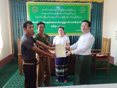 ထို့နောက် လင်းခေးခရိုင် ကျေးလက်ဒေသဖွံ့ဖြိုးတိုးတက်ရေးဦးစီးဌာန ခရိုင်ဦးစီးမှူး ဦးလှမျိုးအောင်နှင့် မောက်မယ်မြို့နယ် ကျေးလက်ဒေသဖွံ့ဖြိုးတိုးတက်ရေးဦးစီးဌာန မြို့နယ်ဦးစီးမှူး ဦးစိုင်းစံထွန်းလင်းတို့က သင်တန်းသားများကို လုပ်ငန်းများဆောင်ရွက်ရာတွင် အထောက်အကူဖြစ်စေရန် လွှ၊ တူ၊ ပေကြိုး၊ စသည့် လက်သမား၊ ပန်းရံ အသုံးအဆောင်ပစ္စည်းများနှင့် သင်တန်းဆင်းလက်မှတ်များ ပေးအပ်ကြသည်။