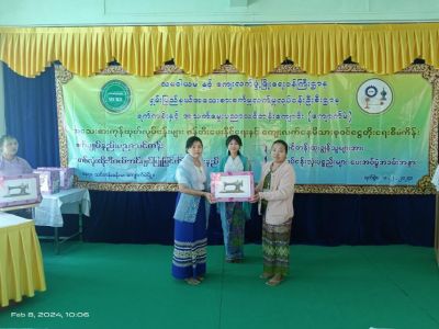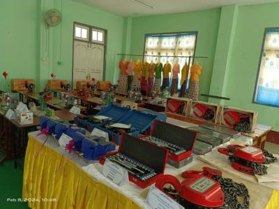 အဆိုပါ သင်တန်းတစ်ခုချင်းစီမှ သတ်မှတ်ချက်များနှင့်အညီ ရွေးချယ်ထားသော ထူးချွန်သင်တန်းသား(၅)ဦးစီ စုစုပေါင်း သင်တန်းသား(၁၀)ဦးအား ကိုယ်ပိုင်လုပ်ငန်း ထူထောင်နိုင်ရန် အတွက် လုပ်ငန်းသုံးပစ္စည်းများ ပေးအပ်ပွဲအခမ်းအနားကို ယနေ့ နံနက်ပိုင်းက ရက်ကန်းနှင့်အသက်မွေးပညာ သင်တန်းကျောင်း(ကျောက်မဲ)ရှိ သင်တန်းခန်းမ၌ ကျင်းပပြုလုပ်ရာ ကျောက်မဲမြို့နယ် စီမံအုပ်ချုပ်ရေးအဖွဲ့ အဖွဲ့ဝင်၊ ရက်ကန်းနှင့် အသက်မွေးပညာသင်တန်းကျောင်း(ကျောက်မဲ) ကျောင်းအုပ်၊ သက်ဆိုင်ရာဌာနများမှ တာဝန်ရှိသူများ၊ ကျေးရွာအုပ်ချုပ်ရေးမှူးများ၊ ရပ်မိရပ်ဖများ၊ စီမံကိန်းကော်မတီဝင်များနှင့် သင်တန်းသားများ တက်ရောက်ကြပြီး ကျောက်မဲမြို့နယ် စီမံအုပ်ချုပ်ရေးအဖွဲ့ အဖွဲ့ဝင်က အဖွင့်အမှာ စကားပြောကြားခဲ့ပါသည်။