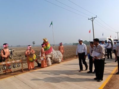 ယင်းနောက် တိုင်းဒေသကြီးဝန်ကြီးချုပ်နှင့်အဖွဲ့သည် ကွန်ကရစ်လမ်းဆောင်ရွက်ထားရှိမှုမှတ်တမ်းနှင့် လမ်းအားဖြတ်သန်းကြည့်ရှုစစ်ဆေးပြီး ဒေသခံပြည်သူများအား ရင်းရင်းနှီးနှီးနှုတ်ဆက်သည်။