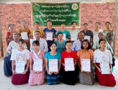 သမဝါယမနှင့်ကျေးလက်ဖွံ့ဖြိုးရေးဝန်ကြီးဌာန၊ သထုံခရိုင်အသေးစားစက်မှုလက်မှုလုပ်ငန်းဦးစီးဌာနအနေဖြင့် ကျေးလက်နေပြည်သူများ မိသားစုဝင်ငွေတိုးပွား၍ အလုပ်အကိုင်အခွင့် အလမ်းများပိုမိုရရှိစေရန်၊ အသေးစားစီးပွားရေးလုပ်ငန်းများ ထူထောင်နိုင်စေရန်နှင့် ပြည်ပပို့ကုန်အစားထိုး ပြည်တွင်းထုတ်ကုန်များ ပိုမိုထုတ်လုပ်လာနိုင်စေရန် ရည်ရွယ်၍ မတ်လ ၁ ရက်နေ့မှ ၅ ရက်နေ့ အထိ (၅)ရက်ကြာ ဖွင့်လှစ်ခဲ့သော လူသုံးကုန်ထုတ်လုပ်မှုနည်းပညာသင်တန်းဆင်းပွဲကို မတ်လ ယနေ့မွန်းလွဲပိုင်းက ပေါင်မြို့နယ်၊ ဘန့်ဘွေးကုန်းကျေးရွာ၌ ကျင်းပပြုလုပ်ခဲ့ပါသည်။