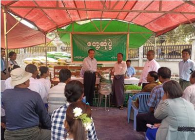အခမ်းနားသို့ တိုင်းဒေသကြီးသမဝါယမဦးစီးဌာန ညွန်ကြားရေမှူး ဦးထွန်းဇော်ဦး၊ တိုင်းဒေသကြီးသမဝါယမအသင်းစုချုပ်ဥက္ကဋ္ဌ ဦးထွန်းလှိုင်နှင့်တာဝန်ရှိသူများသည် သမဝါယမ ကန်ထရိုက်လယ်ယာစနစ်ဖြင့် ဆောင်ရွက်သည့် သမဝါယမအသင်းသား (၂၅) ဦး ပိုင်ဆိုင်သည့် နွေစပါးစိုက်ဧက(၁၂၅)ဧကအတွက် တစ်ဧကလျှင် ငွေကျပ်နှစ်သိန်းနှုန်းနှင့်ညီမျှသော သွင်းအားစု များဖြစ်သည့် စမ်းဝတီမြေဩဇာ၊ ကွန်ပေါင်းနှင့် ပုလဲမြေဩဇာတို့ကို တောင်သူများစိတ်ကြိုက် ဝယ်ယူပြီး လက်ဝယ်အရောက် ပေးအပ်ခဲ့ကြောင်း သိရသည်။