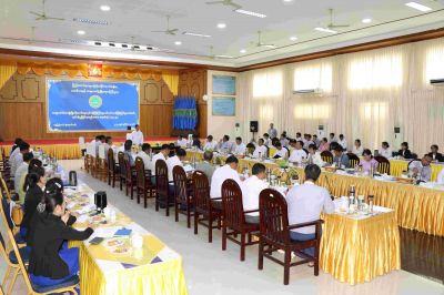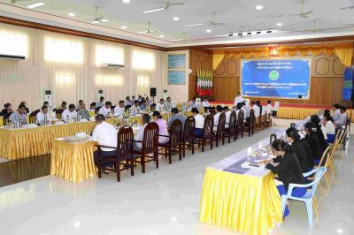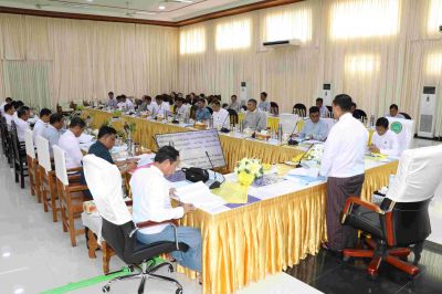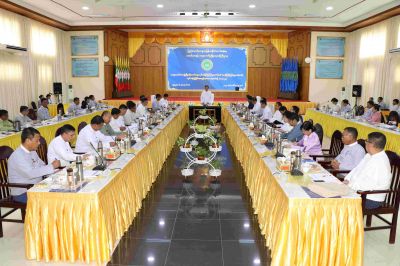 အစည်းအဝေးတွင် ကော်မတီဥက္ကဌ၊ ပြည်ထောင်စုဝန်ကြီးက နိုင်ငံတော်အစိုးရအနေနဲ့ အမျိုးသားအကျိုးစီးပွားကိုရှေးရှုပြီး အမျိုးသားရေးရည်မှန်းချက်ဖြစ်တဲ့ တိုင်းပြည်သာယာဝပြော ရေးနဲ့ စားရေရိက္ခာဖူလုံရေးအတွက် တိုင်းရင်းသားပြည်သူတစ်ရပ်လုံးနှင့် အကျုံးဝင်သော ဘက်စုံ ဖွံ့ဖြိုးတိုးတက်ရေးကို ကြိုးပမ်းဆောင်ရွက်လျက်ရှိပါကြောင်း၊ နိုင်ငံတော်ကြီးဘက်စုံ၊ ကဏ္ဍစုံဖွံ့ဖြိုး တိုးတက်စေရေးအတွက် ချမှတ်ထားသော ရှေ့လုပ်ငန်းစဉ်(၅)ရပ်၊ ဦးတည်ချက် (၉)ရပ် ကိုလည်း အောင်မြင်စွာအကောင်အထည်ဖော်နိုင်ရေးအတွက် ဘက်ပေါင်းစုံမှ ကြိုးပမ်းဆောင်ရွက်လျက်ရှိ တာကို အားလုံးအသိပဲဖြစ်ပါကြောင်း၊ နိုင်ငံ့လူဦးရေ ၇၀% ကျော်ရှိတဲ့ ကျေးလက်နေပြည်သူများရဲ့ လူမှုစီးပွားဘဝဖွံ့ဖြိုးတိုးတက်မှသာ နိုင်ငံ့စီးပွားဖွံ့ဖြိုးလာစေမှာ ဖြစ်တဲ့အတွက် နိုင်ငံတော်အစိုးရ အနေနဲ့ စိုက်ပျိုးမွေးမြူရေးအခြေခံတဲ့ ကုန်ထုတ်လုပ်မှုဖွံ့ဖြိုး တိုးတက်ရေးကို ပထမဦးစားပေး ဆောင်ရွက်လျက်ရှိပြီး ဒုတိယဦးစားပေးအနေနဲ့ အသေးစား၊ အငယ်စားနဲ့အလတ်စားစီးပွားရေး လုပ်ငန်းဖွံ့ဖြိုးတိုးတက်ရေးကို အထူးအလေးပေး ဆောင်ရွက်လျက်ရှိပါကြောင်း၊