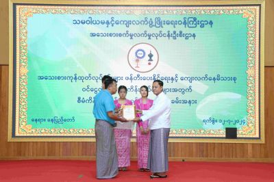 သမဝါယမနှင့် ကျေးလက်ဖွံ့ဖြိုးရေးဝန်ကြီးဌာန၊ အသေးစားစက်မှုလက်မှုလုပ်ငန်းဦးစီးဌာန ၏ “အသေးစားကုန်ထုတ်လုပ်ငန်းများ ဖန်တီးပေးနိုင်ရေးနှင့် ကျေးလက်နေမိသားစုဝင်ငွေတိုးရေး ဆောင်ရွက်မည့် စီမံကိန်းလုပ်ငန်း”များအတွက် စီမံကိန်းလုပ်ငန်းတာဝန် ပေးအပ်ပွဲအခမ်းအနားကို ယနေ့နံနက်ပိုင်းက အဆိုပါဝန်ကြီးဌာန၊ စုပေါင်းအစည်းအဝေးခန်းမ၌ ကျင်းပပြုလုပ်ရာ ပြည်ထောင်စု ဝန်ကြီး ဦးလှမိုး၊ ဒုတိယဝန်ကြီး ဦးမြင့်စိုး၊ အမြဲတမ်းအတွင်းဝန်၊ ညွှန်ကြားရေးမှူးချုပ်များ၊ ဒုတိယညွှန်ကြားရေးမှူးချုပ်များ၊ ညွှန်ကြားရေးမှူးများ၊ သက်ဆိုင်ရာဌာနများမှတာဝန်ရှိသူများနှင့် သင်တန်းနည်းပြများ၊ တိုင်းဒေသကြီး/ ပြည်နယ်အသီးသီးမှ စီမံကိန်းဆောင်ရွက်မည့် ဝန်ထမ်းများ၊ ကျေးရွာအဖွဲ့ခေါင်းဆောင်များ တက်ရောက်သည်။