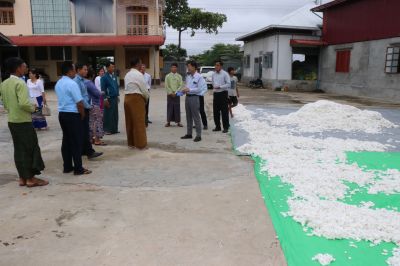 သမဝါယမနှင့် ကျေးလက်ဖွံ့ဖြိုးရေးဝန်ကြီးဌာန၊ ဒုတိယဝန်ကြီး ဦးမြင့်စိုးသည် ယနေ့နံနက် ပိုင်းက တာဝန်ရှိသူများလိုက်ပါလျက် မန္တလေးတိုင်းဒေသကြီး၊ ရမည်းသင်းမြို့နယ်၊ ကတင်ကျေးရွာ အုပ်စု၊ ကတင်ကျေးရွာရှိ လင်းလင်း စိုက်ပျိုးရေးနှင့် အထွေထွေစီးပွားရေးသမဝါယမအသင်းမှ အသင်းသားတောင်သူ(၈၃)ဦး၏ ဝါစိုက်ဧက (၂၁၀) တွင် စိုက်ပျိုးထားသော B-31 မိုးကြိုဝါများ ခူးဆွတ်ရိတ်သိမ်းနေမှုအခြေအနေကို သွားရောက်ကြည့်ရှုစစ်ဆေးပြီး အသင်းသားတောင်သူများနှင့် တွေ့ဆုံကာ Grade A Grade B အဆင့်မီဝါများ ရရှိနိုင်မှုအခြေအနေနှင့် တစ်ဧကအထွက်နှုန်း၊ ဈေးကွက်ချိတ်ဆက်ရောင်းချနိုင်မှု အခြေအနေတို့ကို မေးမြန်းပြီး ကျေးလက်ဒေသဖွံ့ဖြိုးတိုးတက် ရေးဦးစီးဌာနက ရေရရှိရေးအတွက် တွင်းတိမ်တူးဖော်ပေးထားသော စိုက်ဧကများတွင် မိုးစပါးကို ပန်းတိုင်အထွက်နှုန်းရရှိအောင် စိုက်ပျိုးကြရေး မှာကြားသည်။