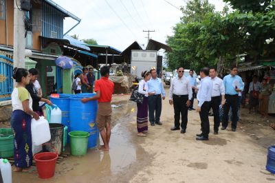 ရှေးဦးစွာ ပြည်ထောင်စုဝန်ကြီးနှင့်အဖွဲ့သည် လယ်ဝေးမြို့နယ်၊ ကြို့ပင်သာကျေးရွာ၌ ကျေးလက်ဒေသဖွံ့ဖြိုးတိုးတက်ရေးဦးစီးဌာနပိုင် ရွေ့လျားရေသန့်စင်ကားဖြင့် သောက်သုံးရေ ဖြန့်ဝေပေးနေမှု အခြေအနေများကို သွားရောက်ကြည့်ရှုစစ်ဆေးရာ ပြည်ထောင်စုဝန်ကြီးက သက်ဆိုင်ရာ တာဝန်ရှိသူများအနေဖြင့် ကျေးရွာနေပြည်သူများ သောက်သုံးရေများရရှိရေး လိုအပ်သည်များ အမြန်ဆုံး ဆောင်ရွက်ပေးသွားရန် ဆွေးနွေးမှာကြားပါသည်။